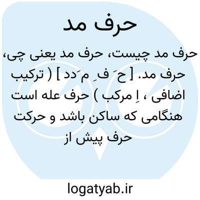 حرف مد. [ ح َ ف ِ م َدد ] ( ترکیب اضافی، اِ مرکب ) حرف عله است هنگامی که ساکن باشد و حرکت حرف پیش از آن هم جنس وی باشد، پس هر حرف مد حرف لین است نه بعکس و الف همواره حرف مد است. و واو و یاء گاهی حرف مد و گاهی حرف لین است. ( از کشاف اصطلاحات الفنون ).