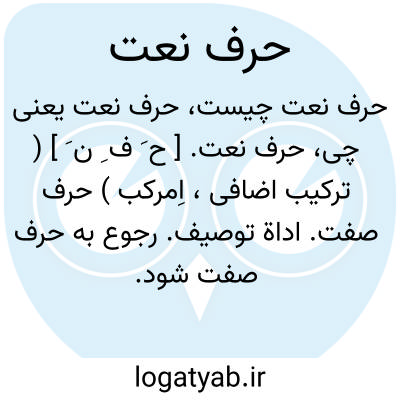 حرف نعت. [ ح َ ف ِ ن َ ] ( ترکیب اضافی، اِمرکب ) حرف صفت. اداة توصیف. رجوع به حرف صفت شود.