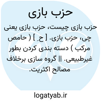 حزب بازی. [ ح ِ ] ( حامص مرکب ) دسته بندی کردن بطور غیرطبیعی. || گروه سازی برخلاف مصالح اکثریت.