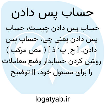 حساب پس دادن. [ ح ِ پ َ دَ ] ( مص مرکب ) روشن کردن حسابدار وضع معاملات را برای مسئول خود. || توضیح دادن و دلیل آوردن برای اعمال. روز قیامت باید از همه اعمال حساب پس داد.