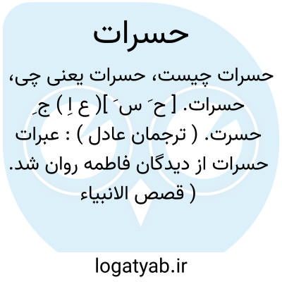 حسرات. [ ح َ س َ ]( ع اِ ) ج ِ حسرت. ( ترجمان عادل ): عبرات حسرات از دیدگان فاطمه روان شد. ( قصص الانبیاء جویری ).