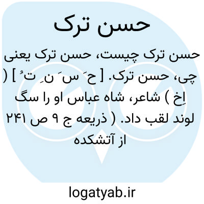 حسن ترک. [ ح َ س َ ن ِ ت ُ ] ( اِخ ) شاعر، شاه عباس او را سگ لوند لقب داد. ( ذریعه ج 9 ص 241 از آتشکده آذر ).