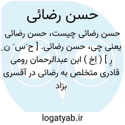 حسن رضائی. [ ح َس َ ن ِ رِ ] ( اِخ ) ابن عبدالرحمان رومی قادری متخلص به رضائی در آقسری بزاد و در قسطنطینیة به سال 1071 هَ. ق. درگذشت. او راست: تحفةالمنازل و دیوان شعر ومعرفةالطریقة القادریة. ( هدیة العارفین ج 1 ص 295 ).