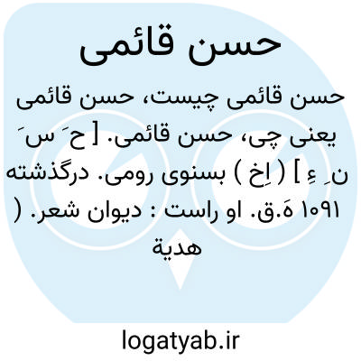 حسن قائمی. [ ح َ س َ ن ِ ءِ ] ( اِخ ) بسنوی رومی. درگذشته 1091 هَ.ق. او راست: دیوان شعر. ( هدیة العارفین ج 1 ص 295 ).