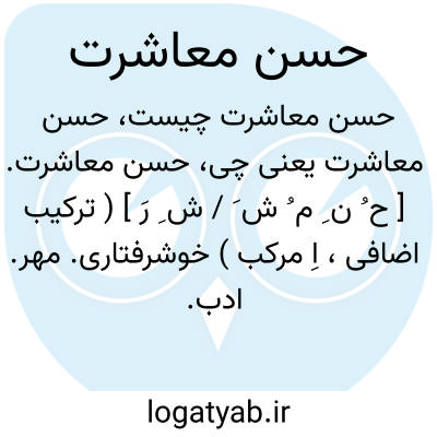 حسن معاشرت. [ ح ُ ن ِ م ُ ش َ / ش ِ رَ ] ( ترکیب اضافی، اِ مرکب ) خوشرفتاری. مهر. ادب.