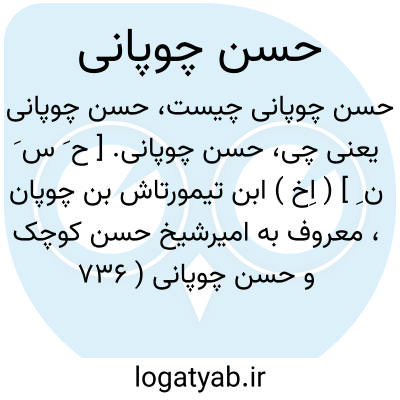 حسن چوپانی. [ ح َ س َ ن ِ ] ( اِخ ) ابن تیمورتاش بن چوپان، معروف به امیرشیخ حسن کوچک و حسن چوپانی ( 736 - 744 هَ. ق. ). پس از پدرش حاکم سیواس شد و زوجه اش پنج تن راوادار کرد تا وی را خفه کردند. شمس الدین محمود اصفهانی در تاریخ مرگ حسن چوپانی ساخته است: