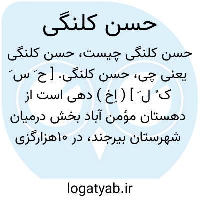 حسن کلنگی. [ ح َ س َ ک ُ ل َ ] ( اِخ ) دهی است از دهستان مؤمن آباد بخش درمیان شهرستان بیرجند، در 10هزارگزی جنوب درمیان به 5 هزارگزی خاور شوسه عمومی درمیان به سربیشه. کوهستانی، معتدل. سکنه آن 11 تن شیعه. زبان، فارسی. ( از فرهنگ جغرافیایی ایران ج 9 ).