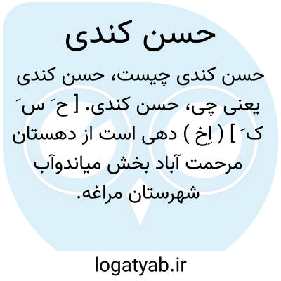 حسن کندی. [ ح َ س َ ک َ ] ( اِخ ) دهی است از دهستان مرحمت آباد بخش میاندوآب شهرستان مراغه. 6هزارگزی میاندوآب 4هزارگزی باختر راه ارابه رو میاندوآب و میناب. جلگه، معتدل، مالاریایی. سکنه آن 173 تن شیعه. ترک زبان.آب آن از زرینه رود. محصول آنجا غلات، چغندر، کشمش، حبوبات. شغل اهالی زراعت. صنایع دستی، جاجیم بافی. راه مالرو دارد. ( از فرهنگ جغرافیایی ایران ج 4 ص 174 ).