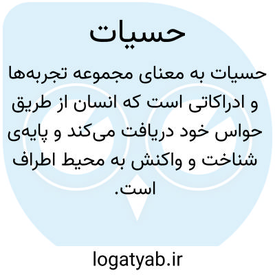 کلمه‌ی «حسیات» در فارسی به معنای مجموعه احساسات، ادراکات یا تجربه‌های ناشی از حواس پنج‌گانه است. این واژه جمع «حس» است و به آنچه از طریق بینایی، شنوایی، بویایی، چشایی و لامسه دریافت می‌کنیم اشاره دارد. حسیات نقش مهمی در تجربه‌ی انسان از جهان پیرامون دارند و پایه‌ی بسیاری از شناخت‌ها و واکنش‌های رفتاری محسوب می‌شوند. در فلسفه و روانشناسی، حسیات به داده‌های اولیه ذهن گفته می‌شود که از طریق حواس به دست می‌آیند و می‌توانند زمینه‌ساز تفکر و تصمیم‌گیری باشند. این واژه معمولاً برای توصیف تجربه‌های مستقیم و ملموس به کار می‌رود و با ادراکات ذهنی یا مفهومی متفاوت است. در ادبیات فارسی، حسیات گاهی برای توصیف تجربیات عاطفی و جسمانی هم استفاده می‌شود. از نظر علمی و روانشناسی، مطالعه آن به فهم نحوه عملکرد حواس و پردازش اطلاعات توسط مغز کمک می‌کند. این واژه با مفاهیمی مانند احساسات، ادراک، تجربه، تجربه حسی و دریافت مستقیم مرتبط است.