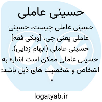 [ویکی فقه] حسینی عاملی (ابهام زدایی). حسینی عاملی ممکن است اشاره به اشخاص و شخصیت های ذیل باشد: • سید جواد حسینی عاملی غروی، علامه آیت الله سید جواد حسینی عاملی غروی از فقهای شیعه در قرن دوازدهم هجری قمری• سید محسن امین حسینی عاملی، از علمای بزرگ شیعه در قرن سیزدهم و چهاردهم هجری قمری