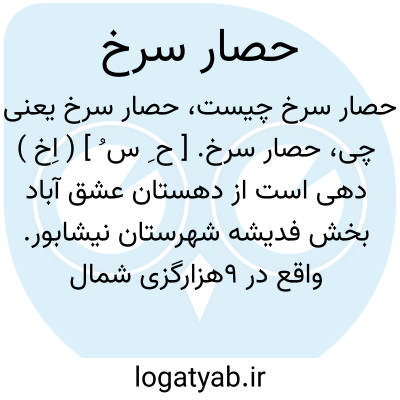 حصار سرخ. [ ح ِ س ُ ] ( اِخ ) دهی است از دهستان عشق آباد بخش فدیشه شهرستان نیشابور. واقع در 9هزارگزی شمال فدیشه. ناحیه ای است واقع در جلگه. معتدل. دارای 385 تن سکنه میباشد. فارسی زبانند. از قنات مشروب میشود. محصولات آنجا غلات. اهالی به کشاورزی گذران میکنند. راه مالرو است. ( از فرهنگ جغرافیایی ایران ج 9 ).
