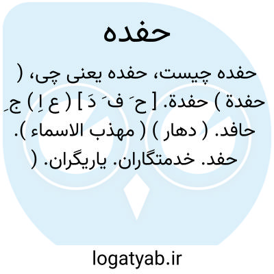 ( حفدة ) حفدة. [ ح َ ف َ دَ ] ( ع اِ ) ج ِ حافد. ( دهار ) ( مهذب الاسماء ). حفد. خدمتگاران. یاریگران. ( منتهی الارب ). خدمه.( اقرب الموارد ). اعوان. ( مهذب الاسماء ). خادمان. یاران. || دختران. دخترکان. || نبیرگان. نوادگان. || دامادان و خسران. ( منتهی الارب ). || صناع الوشی. ( اقرب الموارد ).