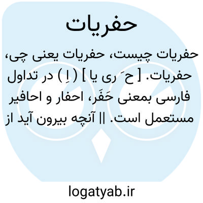 حفریات. [ ح َ ری یا ] ( اِ ) در تداول فارسی بمعنی حَفَر، احفار و احافیر مستعمل است. || آنچه بیرون آید از چیزهای کهن با این عمل. ( یادداشت مرحوم دهخدا ): حفریات شوش.