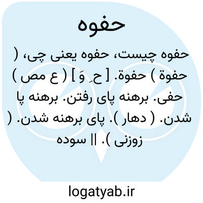 ( حفوة ) حفوة. [ ح ِ وَ ] ( ع مص ) حفی. برهنه پای رفتن. برهنه پا شدن. ( دهار ). پای برهنه شدن. ( زوزنی ).