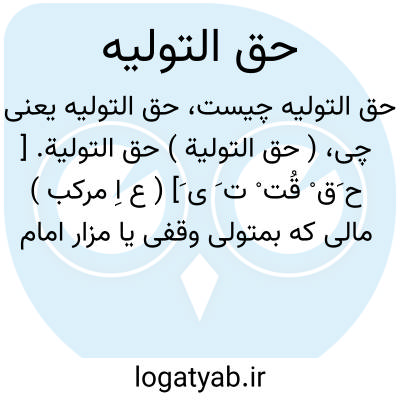 ( حق التولیة ) حق التولیة. [ ح َق ْ قُت ْ ت َ ی َ] ( ع اِ مرکب ) مالی که بمتولی وقفی یا مزار امام یاامام زاده ای دهند برای تولیت امور آن وقف یا مزار.