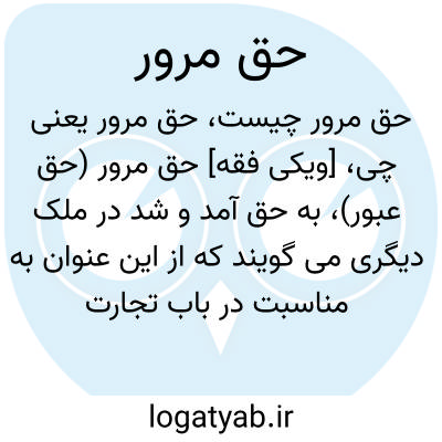 [ویکی فقه] حق مرور (حق عبور)، به حق آمد و شد در ملک دیگری می گویند که از این عنوان به مناسبت در باب تجارت سخن گفته اند.