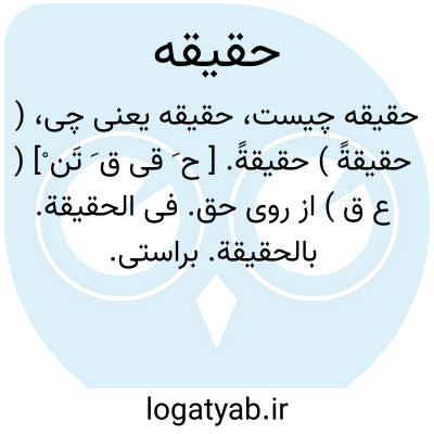 ( حقیقةً ) حقیقةً. [ ح َ قی ق َ تَن ْ] ( ع ق ) از روی حق. فی الحقیقة. بالحقیقة. براستی.