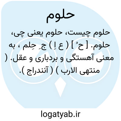 حلوم. [ ح ُ ] ( ع اِ ) ج ِ حِلم، به معنی آهستگی و بردباری و عقل. ( منتهی الارب ) ( آنندراج ).