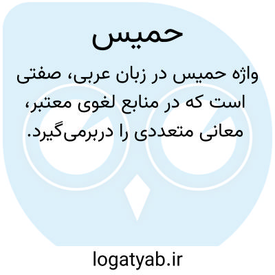واژهٔ حَمِیس در زبان عربی، صفتی است که در منابع لغوی معتبر، معانی متعددی را دربرمی‌گیرد. بر پایهٔ کتاب منتهی الارب و اقرب الموارد، این واژه در اصل به معنای فرد دلاور و شجاع به کار می‌رود و بر کسی دلالت دارد که از روحیه‌ای استوار و بی‌باک برخوردار است. در گستره‌ای دیگر، حَمِیس برای توصیف هر چیز شدید و سخت نیز مورد استفاده قرار می‌گیرد. این معنا نشان‌دهندهٔ شدت و حدت در ویژگی‌های مختلف است، به گونه‌ای که می‌تواند به موقعیت‌های دشوار یا حالات بسیار قوی اشاره داشته باشد. همچنین، این واژه در برخی متون کهن، به معنای تَنور (اجاق یا کوره) آمده است. این کاربرد استعاری، احتمالاً به مفهوم گرمای سوزان و شدت حرارت مرتبط است و گویای این نکته است که حمیس» در بسترهای مختلف، معانی عمیق و متنوعی را انتقال می‌دهد.