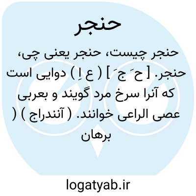 گلو. در اقرب گوید: «الحنجرة: الحلقوم» جمع آن حناجر است رسیدن دلها به گلو کنایه از شدّت اضطراب و ترس است یعنی گوئی قلب‏ها از جای خود بالا آمده و به گلو رسیده‏اند. طبرسی آن را جوف حلقوم معنی کرده است.