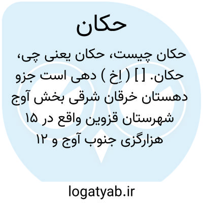 حکان. [ ] ( اِخ ) دهی است جزو دهستان خرقان شرقی بخش آوج شهرستان قزوین واقع در 15 هزارگزی جنوب آوج و 12 هزارگزی راه عمومی. ناحیه ای است کوهستانی سردسیری. دارای 570 تن سکنه میباشد. از چشمه سار مشروب می شود. محصولاتش غلات، بنشن و عسل است. اهالی به کشاورزی گذران میکنند. راه آن مالرو است. ( از فرهنگ جغرافیائی ایران ج 1 ).