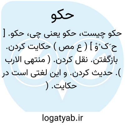 حکو. [ ح َک ْوْ ] ( ع مص ) حکایت کردن. بازگفتن. نقل کردن. ( منتهی الارب ). حدیث کردن. و این لغتی است در حکایت. ( اقرب الموارد ). رجوع به حکایة شود.