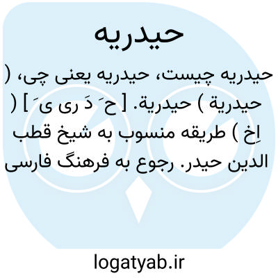 ( حیدریة ) حیدریة. [ ح َ دَ ری ی َ ] ( اِخ ) طریقه منسوب به شیخ قطب الدین حیدر. رجوع به فرهنگ فارسی معین شود.