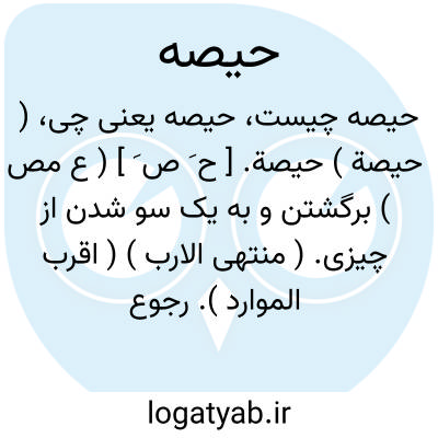 ( حیصة ) حیصة. [ ح َ ص َ ] ( ع مص ) برگشتن و به یک سو شدن از چیزی. ( منتهی الارب ) ( اقرب الموارد ). رجوع به حیص شود.