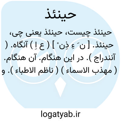حینئذ. [ ن َ ءِ ذِن ْ ] ( ع اِ ) آنگاه. ( آنندراج ). در این هنگام. آن هنگام. ( مهذب الاسماء ) ( ناظم الاطباء ). و حینئذ در فلک البروج چهار نقطه حاصل شود. ( درةالتاج ).