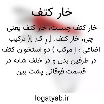 خار کتف. [ رِ ک ِ ]( ترکیب اضافی، اِ مرکب ) دو استخوان کتف در طرفین بدن و در خلف شانه در قسمت فوقانی پشت بین دنده دوم و دنده هشتم و در طرفین خط وسط ( تیره پشت ) قرار می گیرد و بواسطه زائده خارجیش با استخوان چنبر مربوط شود. این استخوان که از استخوانهای پهن است مثلثی شکل بوده و شکل آن در زیر پوست محسوس میباشد. استخوان کتف بواسطه عضله ها بر قفسه سینه نصب شده است وقتی که آن عضله ها کم قوه و ضعیف باشد این طور بنظر می آید که استخوان بشکل بال در حال جدا شدن از قفسه سینه میباشد و مخصوصاً کنار داخلیش بسیار نمایان می گردد. استخوان کتف دارای یک سطح قدامی و یک سطح خلفی و سه کنار داخلی فوقانی و خارجی میباشد. سطح قدامی استخوان که بطرف دنده ها متوجه است مقعر و بحفره تحت کتفی موسوم میباشد. سطح خلفی استخوان از نظر شکل خارجی دارای اهمیت است زیرا بواسطه زائده برآمده ای موسوم به خار کتف بدو حفره غیر مساوی فوق خاری و تحت خاری تقسیم میشود. ( کتاب کالبدشناسی هنری تألیف دکتر نعمت اﷲ کیهانی ص 23 و 24 ).