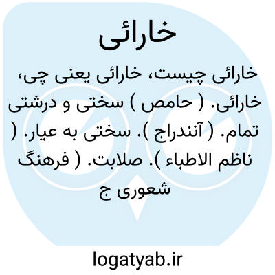 خارائی. ( حامص ) سختی و درشتی تمام. ( آنندراج ). سختی به عیار. ( ناظم الاطباء ). صلابت. ( فرهنگ شعوری ج 1 ص 384 ). چون سنگ سخت:
