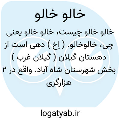 خالوخالو. ( اِخ ) دهی است از دهستان گیلان ( گیلان غرب ) بخش شهرستان شاه آباد. واقع در 2 هزارگزی شمال باختری گیلان کنار شوسه گیلان به قصر شیرین. ناحیه ای است واقعدر دشت با آب و هوای گرمسیری و مالاریایی، 100 تن سکنه دارد. که شیعی مذهب و کردی و فارسی زبانند. آب آنجا از رودخانه گیلان و محصول آنجا غلات و برنج و حبوبات و پنبه و صیفی و تریاک و لبنیات است. شغل اهالی زراعت و گله داری و راه آن مالرو است. سکنه آنجا از طایفه کلهر می باشند. ( از فرهنگ جغرافیایی ایران ج 5 ).