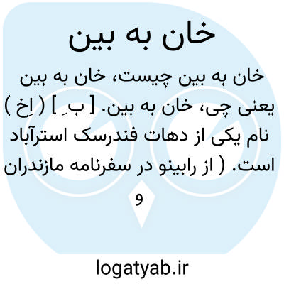 خان به بین. [ ب ِ ] ( اِخ ) نام یکی از دهات فندرسک استرآباد است. ( از رابینو در سفرنامه مازندران و استرآباد بخش انگلیسی ص 82 و 128 ).