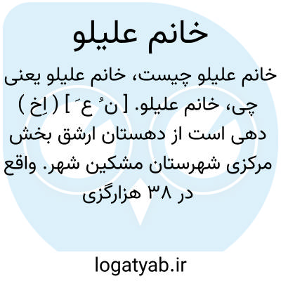 خانم علیلو. [ ن ُ ع َ ] ( اِخ ) دهی است از دهستان ارشق بخش مرکزی شهرستان مشکین شهر. واقع در 38 هزارگزی شمال خاوری مشکین شهر و 10 هزارگزی شوسه گرمی به اردبیل.ناحیه ای است کوهستانی با آب و هوای معتدل و اهالی آنجا زراعت میکنند. ( از فرهنگ جغرافیایی ایران ج 4 ).