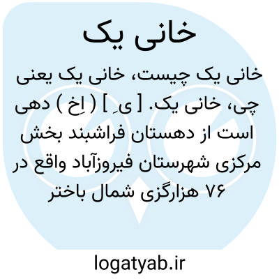 خانی یک. [ ی ِ ] ( اِخ ) دهی است از دهستان فراشبند بخش مرکزی شهرستان فیروزآباد واقع در 76 هزارگزی شمال باختر فیروزآباد و کنار راه فرعی فراشبند به کازرون. ناحیه ای است در جلگه و گرمسیر دارای 541 تن سکنه که شیعی مذهب و فارسی زبانند. آب آنجا از قنات و محصول آن غلات است. اهالی به کشاورزی گذران میکنند و راه آنجا مالرو میباشد. ( از فرهنگ جغرافیایی ایران ج 7 ).