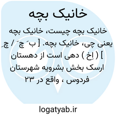 خانیک بچه. [ ب َ چ َ / چ ِ ] ( اِخ ) دهی است از دهستان ارسک بخش بشرویه شهرستان فردوس، واقع در 23 هزارگزی جنوب و یک هزارگزی شوسه عمومی بشرویه به دهک. این دهکده در دامنه کوهستان قرار دارد و هوایش گرم و سکنه اش 45 تن است. مذهب اهالی شیعه و زبان آنها فارسی است. آب آنجا از قنات و محصول آنجا غلات و پنبه و ابریشم و تریاک و حاصل باغی است. اهالی به کشاورزی گذران میکنند و راه گرچه مالرو است ولی از خانیک به آنجا میتوان اتومبیل برد. ( از فرهنگ جغرافیایی ایران ج 9 ).