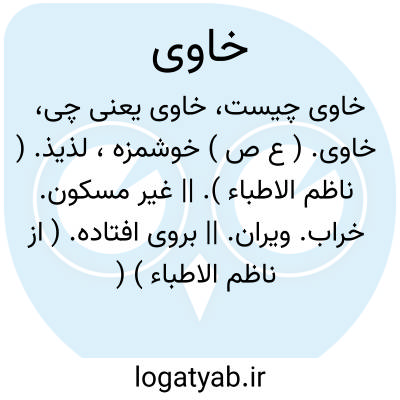 خاوی. ( ع ص ) خوشمزه، لذیذ. ( ناظم الاطباء ). || غیر مسکون. خراب. ویران. || بروی افتاده. ( از ناظم الاطباء ) ( از اقرب الموارد ) ( از المنجد ) ( از تاج العروس ). || خالی. تهی. منه: خاوی البطن؛ شکم خالی. خاوی الوفاض؛ کیسه تهی. ( از ناظم الاطباء ) ( از اقرب الموارد ) ( از تاج العروس ) ( از منتهی الارب ).