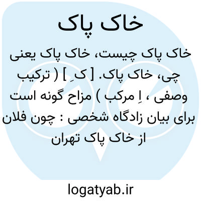 خاک پاک. [ ک ِ ] ( ترکیب وصفی، اِ مرکب ) مزاح گونه است برای بیان زادگاه شخصی: چون فلان از خاک پاک تهران است.