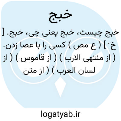 خبج. [ خ َ ] ( ع مص ) کسی را با عصا زدن. ( از منتهی الارب ) ( از قاموس ) ( از لسان العرب ) ( از متن اللغة ) ( از معجم الوسیط ) ( از تاج المصادر بیهقی ) ( از اقرب الموارد ) ( از تاج العروس ) ( از البستان ): خبجه بالعصا؛ او را با عصا زد. || تیز دادن. ( از منتهی الارب ) ( از قاموس ) ( از لسان العرب ) ( از متن اللغة ) ( از معجم الوسیط ) ( از تاج العروس ). حَبِق. ( از تاج المصادر بیهقی ). خبج بالاست: تیز داد. || جماع کردن. گائیدن. ( از منتهی الارب ) ( از لسان العرب ) ( از تاج العروس ) ( از قاموس ) ( از اقرب الموارد ). آرمیدن با زن.