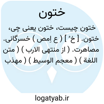 ختون. [ خ ُ ] ( ع اِمص ) خسرگانی. مصاهرت. ( از منتهی الارب ) ( متن اللغة ) ( معجم الوسیط ) ( مهذب الاسماء ). دامادی. || ( مص ) ازدواج کردن مرد با زن. ( از متن اللغة ).