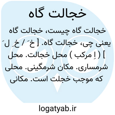 خجالت گاه. [ خ َ / خ ِ ل َ ] ( اِ مرکب ) محل خجالت. محل شرمساری. مکان شرمگینی. محلی که موجب خجلت است. مکانی که باعث خجالت می باشد: