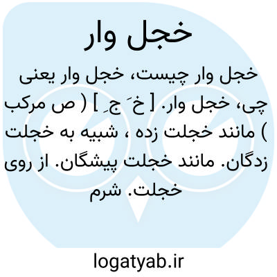 خجل وار. [ خ َ ج ِ ] ( ص مرکب ) مانند خجلت زده، شبیه به خجلت زدگان. مانند خجلت پیشگان. از روی خجلت. شرم زده. شرمسار: