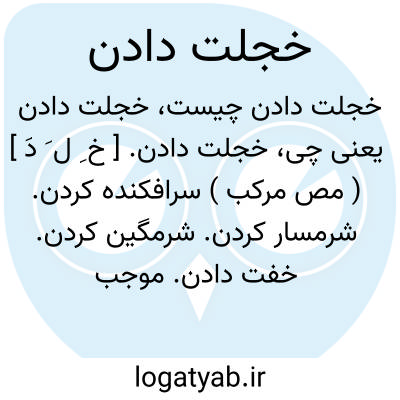 لغت نامه دهخدا خجلت دادن. [ خ ِ ل َ دَ ] ( مص مرکب ) سرافکنده کردن. شرمسار کردن. شرمگین کردن. خفت دادن. موجب شرم زدگی فراهم کردن. باعث سرافکندگی ایجاد کردن. شرمگن ساختن.