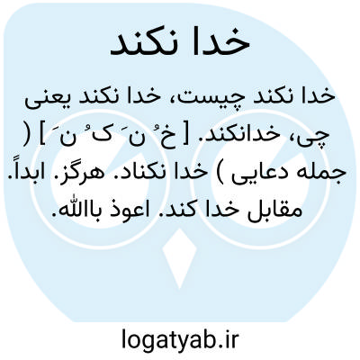 خدانکند. [ خ ُ ن َ ک ُ ن َ ] ( جمله دعایی ) خدا نکناد. هرگز. ابداً. مقابل خدا کند. اعوذ باﷲ.