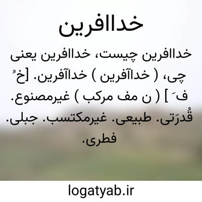 ( خداآفرین ) خداآفرین. [خ ُ ف َ ] ( ن مف مرکب ) غیرمصنوع. قُدرَتی. طبیعی. غیرمکتسب. جبلی. فطری. ( یادداشت بخط مؤلف ):