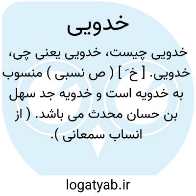 خدویی. [ خ َ ] ( ص نسبی ) منسوب به خدویه است و خدویه جد سهل بن حسان محدث می باشد. ( از انساب سمعانی ).