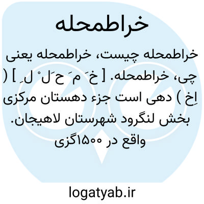 خراطمحله. [ خ َ م َ ح َل ْ ل ِ ] ( اِخ ) دهی است جزء دهستان تولم بخش مرکزی شهرستان فومن. واقع در 14هزارگزی شمال فومن و دوهزارگزی خاور راه فرعی سیاه درویشان به بازارمحله. این ناحیه در جلگه قرار دارد. آب و هوای آن معتدل و مرطوب و مالاریایی است. بدانجا 436 تن سکنه گیلکی و فارسی زبان زندگی می کنند. آب آن از رودخانه گازر و محصولاتش برنج، توتون، سیگار و ابریشم می باشد. اهالی بکشاورزی گذران می کنند و راه آن مالرو است. ( از فرهنگ جغرافیایی ایران ج 2 ).