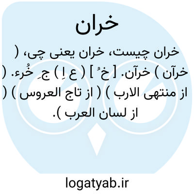 خران. [ خ َ ] ( اِخ ) نام یکی از دهستانهای بخش مرکزی شهرستان شوشتر است. این دهستان در جنوب خاوری شوشتر و جنوب دهستان گندزلو و باختر دهستان ایتوند واقع شده و هوای آن گرم و مالاریایی است. آب آن از رودخانه کارون و لوله شرکت نفت و چاه تأمین می گردد.محصولاتش: غلات و اهالی بکشاورزی و کارگری در شرکت نفت گذران می کنند. این دهستان از هفت قریه بزرگ و کوچک تشکیل شده و دارای 2000 تن سکنه می باشد. قراء مهم دهستان عبارتند از: مجامید و سلامات پایین که هر کدام در حدود 400 تن سکنه دارند و ساکنین آنها از طایفه ٔعرب بادی هستند. ( از فرهنگ جغرافیایی ایران ج 6 ).