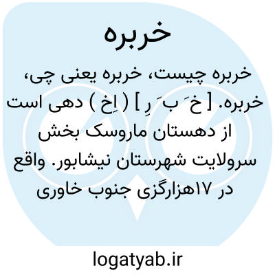 خربره. [ خ َ ب َ رِ ] ( اِخ ) دهی است از دهستان ماروسک بخش سرولایت شهرستان نیشابور. واقع در 17هزارگزی جنوب خاوری چگنه بالا. این دهستان کوهستانی با آب و هوای معتدل و 170 تن سکنه است. آب آن از قنات و راه آن مالرو است. ( از فرهنگ جغرافیایی ایران ج 9 ).