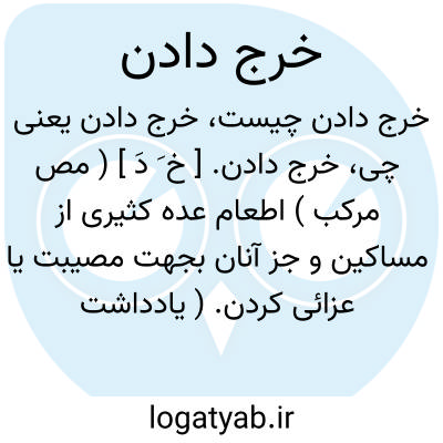 خرج دادن. [ خ َ دَ ] ( مص مرکب ) اطعام عده کثیری از مساکین و جز آنان بجهت مصیبت یا عزائی کردن. ( یادداشت بخط مؤلف ).